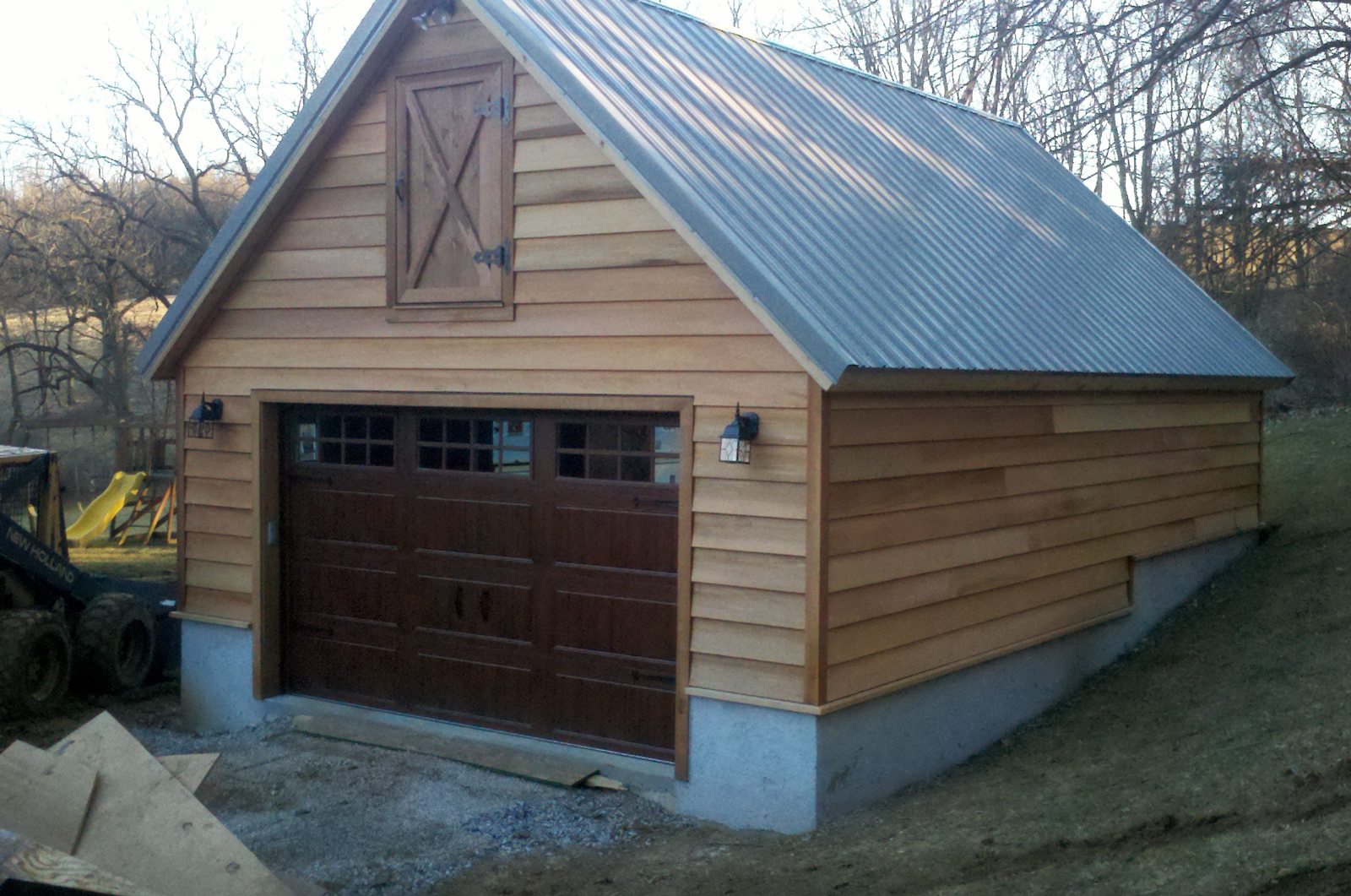 Custom designed large 3 car garage with car lifts and an unfinished second floor for a future in-law suite.